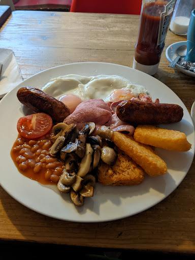So, onto the food! My wife and I both had a full English. When ordering they wouldn’t swap the fried tomatoes for mushrooms, I had to pay extra, (which is strange when the mushrooms they used are cheaper than tomatoes). At this point we should’ve just gone elsewhere. I asked for plain bacon as on the menu it said smoked, but they only had smoked, so had to settle. To their credit the food arrived quickly. However, The toast was granary, not wholemeal, which is what they offered. The fried eggs were very snotty. One of the breakfasts had potato fry/chunks, instead of hash browns, we asked both hash browns, so had to wait for them to be cooked. Being the typical Englishman I am, I didn’t ask for a refund as it makes me feel very uneasy. Looking back I should’ve just got my money back, and not looked back. But hey, we live and learn. All in all, not the...