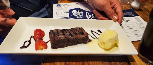Staying inthe area for 5 nights we were looking for a dog friendly pubthag served food. Well we hit a real winner with this one. Not only super friendly and welcoming to dogs, (we met so many new doggie friends) but the foodus honestly amazing. We never expected a local village pub to serve that level of food. We sampled over 3 nights, yes we went back 2x more it was so good, a range of their food. From the pies,which I can honestly say were the best pies I've tasted for many a year. Not only packed with filling, but the pastry was out of this world. Perfect.mash and peas accompanied, simply but super tasty withthe addition of onion crispy bits. Burgers that were sampled by others were all commented that they were moist and delicious. The bass dish was also excellent, the curry I had night 2 was one of the best I'd had for quite a while. Lots of filling and not the normal lots if sauce with little meat etc.rice with chilli extra was great. Anx dont think they could havd got larger popadoms. Husband said the hunters chicken was amazing too. Infact us having repeats of our first nights choice says it all really. Now the sweets. We had roulade ,sticky toffee and rocky road the first night. Very tasty. However after seeing the rocky road, we all had that the next 2x. Not only a genius idea to have in a jar, base was lovely and crumbly, cheesecake yummy, but best bit was the hunt for the maltesers. Cue loads of laughter and "why have I not found one?"" Oh wait. .here I go" Had we been staying longer we may have tried more of the menu, or just had those amazing pies again. Hopefully we will be back in area sometime and needless to say our first stop will be the Bell Inn. Thanks guys n girls for the great welcome,...
