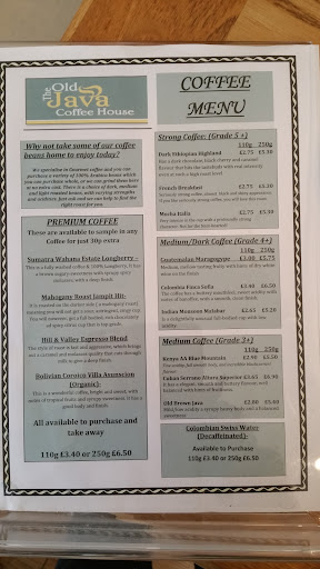 Have used the Old Java Coffee House before and have always found it cosy, friendly with staff that are a cut above the rest. Excellent coffee with a great choice of teas (choose Jing teas if you like the "tea experience"). Tables are small but comfortable with a narrow entrance that is just wide enough for a wheelchair. A restroom is available and they are dog friendly (well behaved hounds are preferred). Set just back from the sea-front on a busy little town road it is otherwise an oasis of charm and peace. Well worth a visit - cakes or cooked meals are available to suit all...