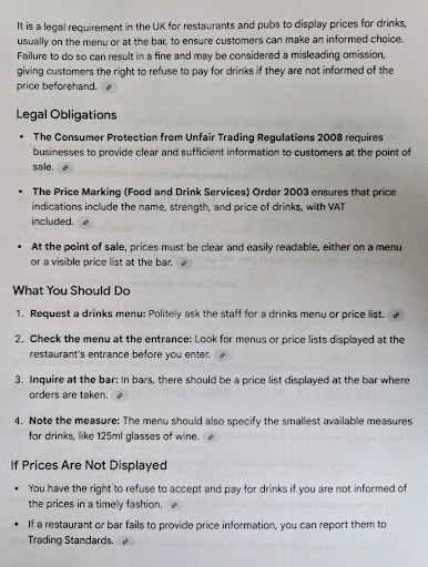 You'll see below the Manager's response. Following on from that response, my question to Kirsty therefore is this. If we visited on 9th September, and you responded on around 29th September, it has been some 3 weeks that your premises has been without a drinks menu. Why did you choose to remove the old drinks menus before the new ones have arrived? I visited another Toby last week and they had drinks menus at all their tables. So why not yours? And I find it appalling that you expect customers to have to get up from their tables and walk to the bar in search of that supposed elusive and cleverly concealed price list. To help customers, I have found a drinks menu online and attached an extract from it. If you are not provided with a menu at the table, go by...