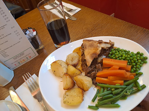 Read moreFull meals coming out of the kitchen looked wholesome. We ordered a ploughman's with salad pickles and a freshly baked roll. We got a very small amount of salad. 5 pickled onions 3 small gherkins a teaspoon of pickle and a dessert spoon of coleslaw. The cheese was two small triangles. Waxy and tasteless. Chicken replaced ham. Not a problem but chicken was dry and tasteless. Flatwhite had only one shot of coffee so again had no real flavour. It was only £2.50 for the coffee so a good price if you like milky weak coffee. We ordered flatwhites. All in all disappointed. As I said the meals...