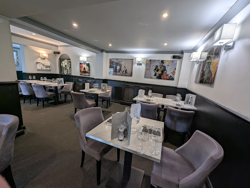 To the back, there is a beautiful restaurant area with a good floorplan. I didn't count the amount of tables but you can definitely have the place packed and still have space to enjoy those by your tables company. Beautiful art (I saw a lot of Banksy) against the walls to give it a modern contemporary but luxury feeling.