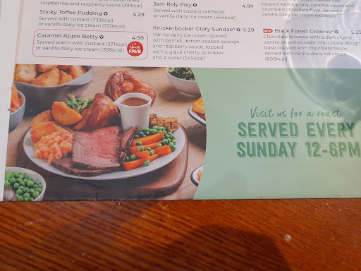 The staff were nice to me (but there was a customer who was threatened to not be served because he walked past the waiting stand) and served my food quickly. I ordered the trio roast dinner which is turkey, gammon and beef with the regular sides (potatoes, vegetables etc). Unfortunately, the restaurant was out of turkey - that may be a good thing as the other meats were drier than sandpaper - and the menu was fasley advertised. In the menu, there was a photo of the food I had ordered, trio of the meats; beef, turkey and gammon, two yorkshire puddings, potatoes, stuffing squares, cabbage, carrots, and gravy. I was served one yorkshire pudding, carrots, potatoes, a plate full of gravy, no cabbage, no stuffing. I understand if there is a shortage of food in the kitchen but I'd like to know if there was, otherwise, I've been cheated. Beside the shortage of food (also meaning the tiny portions), I paid for the unlimited drink. The machine was easy to use despite the syrup for the Dr Pepper drink failing to mix, the other drinks worked. The ice machine was also a simple machine to use and the ice was shaved and seemed fresh. Then, for dessert, I ordered the vegan £4.99 triple chocolate brownie. It was warm and tasteful. Unfortunately, the tables were sticky and still marked with circles from where the previous customers had spilt their drink. The brick walls hadn't been dusted, they were really dusty and smothered in webs. Usually, I wouldn't mind this but the fact that the table was up against this dust collecting wall, I'm concerned about the cleanliness of this restaurant. Overall, two stars because of the tasteless dinner and dirty tables. Two starts because of the edible desert. Could be better...