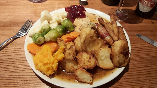 Read moreUpon arrival it took a good minute for someone to acknowledge and seat us. No stress there. We parked opposite the premiere inn assuming that the parking is for the restaurant too. Ample parking and vacant spots if you were coming for dinner. To our surprise they had our table reserved, or didnât but already had a table big enough ti seat the family. Ample spacious tables and walkways. Drinks ordered and one of the drinks was not what we ordered. We ordered from the roast menu, which they gave us, and what we were there for. Sunday roast. I was impressed with the different Sunday roast items on the menu. We placed our order, specifying that we prefer our meat well done. Notified that the food was made the day before and they have no power or say with. Some may be cooked medium or some well done; theyâre not sure. In other words, just be happy with what you get. We accepted our fate. Moments later, another waitress, possibly an owner or manager, notifies us that the roast menu is off the table, and that we should order an alternative meal from their main menu. Burgers and chips.