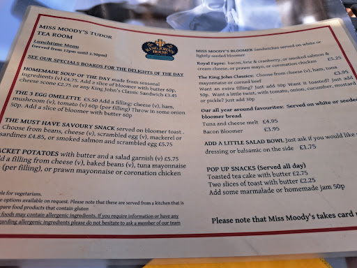 Read moreI recently had the pleasure of enjoying a traditional Christmas lunch at Miss Moody's Tudor Tea Rooms on December 10th, and it was an absolute delight! This was their first time hosting such an event, and they truly exceeded expectations. The food was freshly cooked, full of flavour, and simply delicious.
