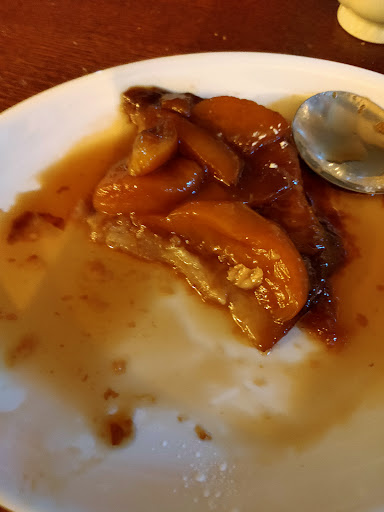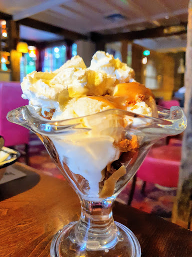 Read moreNot impressed at all. Issue after issue. Being vegan I was told I had to check the app for allergens. On checking the app I realised it's not fit for purpose as it does not itemise the ingredients for a meal in full (which I pointed out should be a basic standard). It is not overly clear what is actually included within a vegan option and even staff had difficulties clarifying this - which then delays the ordering. Another member of the staff decided to involve herself (probably due to the time it was taking to go through the app) and was extremely curt, making me feel unwelcome and disrespected. If you don't want delays please make finding allergens and dietary requirements more transparent. Out of desperation I just ordered food in the hope that it would be okay. In arrival the pie was not served with gravy. No mash or roast potatoes were available (obviously pre-made) so only chips or jacket potato. If I knew the pie was not served with gravy I really wouldn't have bothered. Basic Bisto is vegan. It would have been nice to have a vegan menu stating exactly what was to be served with each meal. We spent £50 for a very unhappy time. We ordered vegan desserts which were described as being served with vegan ice-cream. No ice-cream was available and unsurprisingly no compensation was offered. Some things were most certainly the issue of the brewery chain - but staff need to be trained in allergies and know exactly what is in each dish. If they can't it means they don't have the tools or the training. Meat eaters will love it in there. Sadly I won't be eating with this brewery chain again unless they get their act together by creating a far better allergen / nutrition app. If I could rate it 0/5 I would. Photo is of the vegan peach dish missing it's ice-cream without notice to check it was still wanted. Pie was okay but who eats a pie with no gravy?