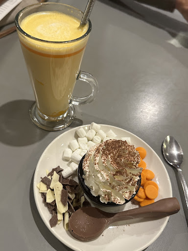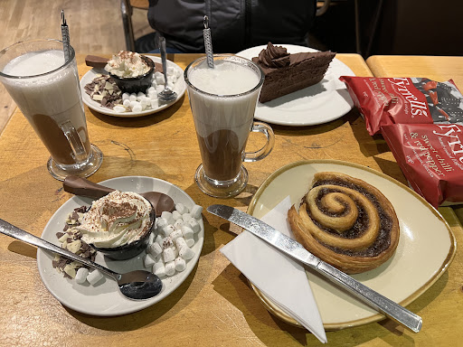 Read moreTo start with the staff were exceptionally nice. However, being a connoisseur of coffee I'd have to say that the coffee served isn't a good blend. It has a bitter after taste which is consistent with cheaper products. The milk was at the right temperature and the barista added a nice design on top. My wife had a hot chocolate and found it to be sickly sweet. Maybe a choice of not so sweet could be given? She noticed that all the sweet accompaniments looked to be far too sweet and that usually means white sugar. Anyway, she opted for a scone with butter. I had a little as well and it was, too be honest, a little stodgy. Anyway, I'm being truthful here. I'm also aware that negative reviews affect businesses, but they can also affect positive changes too. Here's hoping that the profit motive here can in the future can be overridden by one of more quality. As things stand we would...
