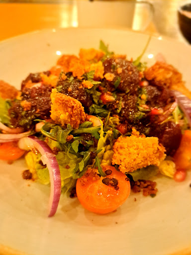 The food well it was amazing, it came out after what felt like an incredibly short wait. It was all nicely presented and the tapas came out on a board 3 dishes grouped together. Being a fussy eater i had a burger and it was by far one of the best burgers i think ive eaten and like mentioned above the fact i could remove the items i didnt want through the online ordering system it was exactly how i wanted it. My daughter loved her lollipop chicken which had he sold the second she heard the name, and for her to finish the entire meal is a compliment from her.