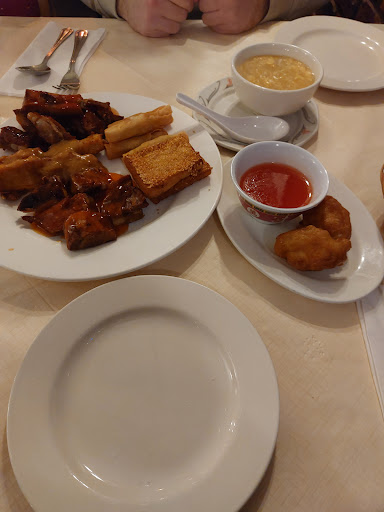The food was poor. Overcooked, overseasoned, and took a long time to arrive. For example, the crispy duck was chewy and the cucumber and spring onion slices to go in the pancake rolls had been hanging around so long that they dried up. The deep fried appetiser looked like it had been thrown at the plate, and was mostly too dried out to be considered appetising. The copious amounts of sickly sweet sauces were essential to be able to eat it at all. The starter was huge and full of carbs, this is a ploy to fill you up, ensuring you don’t order too much of the main course which is more nutritious/expensive. We forced down the unappetising appetiser in fear of being charged a penalty if we left anything on the plate.