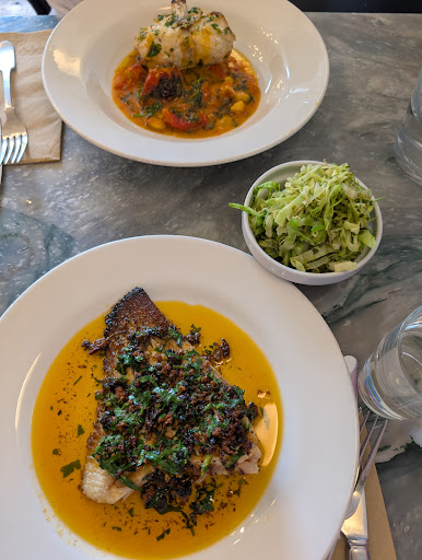 Our waitress (who I’d follow into battle) recommended half the menu, casually, sincerely, like she’d eaten it all for lunch and was still thinking about it. We listened. We changed our orders. She was right. It was glorious. A gurnard dish so delicate it could have written poetry.