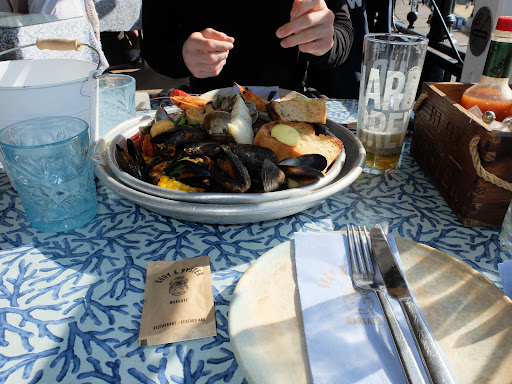 Me and my friend shared the seafood platter for 2 (ÂŁ50, pictured). This was presented as an archipelago of shellfish poking out of an insipid suggestion of a seafood broth. The mussels were juicy and flavourful; the scallops overcooked and masked in an unimaginative nduja sauce; the prawns a bit firm and lacking in any real flavour, and the razorclams were overcooked to the point of resembling rubber bullets. It was a let down to not have the seafood, the star of the show, live up to what it could have been being right next to the sea.