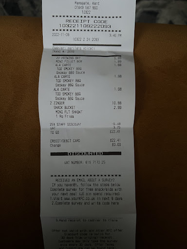 Read moreOrdered a delivery on a Sunday evening and the order was wrong. This is the third or forth time that this branch has got my order wrong. Do not order delivery from this KFC if you don't want to run the risk of a wrong order. When I went in to ask for my correct burger, they got it for me, but wouldn't spare a supercharger sauce as compensation, still trying to charge me 50p for it. Madness. The restaurant was basically empty when I got there, so no excuse for delivering wrong food. By the time they had cooked the correct burger for me and I had driven home, my family had already finished their meal: I got to eat my food 45 minutes after the delivery originally arrived. Would not recommend, did not even get a sorry or anything. KFC is the one fast food chain that consistently gets orders wrong, and are the least apologetic about it. Always pick up the food if...