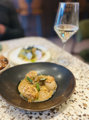 The small plates were a masterclass in refined yet exciting flavours. The Scallops, served with artichoke, hazelnut, and pear, were an exquisite start – the sweetness of the pear complementing the scallop’s delicate brininess, while the nutty crunch of hazelnuts provided an elegant contrast. The Chicken Heart Skewers, paired with apple and kohlrabi, were a revelation – beautifully cooked and bursting with a depth of flavour that showcased the kitchen’s confidence in bold, ingredient-led cooking. Equally stunning was the Pigeon Breast, accompanied by celeriac and radicchio, delivering a gamey richness that was perfectly balanced by the earthiness of celeriac and the bitterness of radicchio.