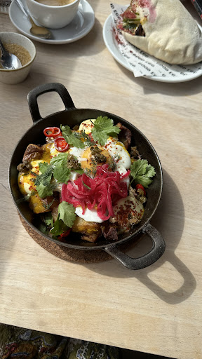 Read moreA popular local breakfast and lunch place. I recently came here with my partner based on her previous positive experience here, and can see why she likes it. We went at around midday on a warm and sunny August Monday and there were only a few tables free. Perhaps you may need to book in advanced on the weekends? The staff that served us were swift, kind and attentive, when we asked to move tables to a recently available one out of direct sunlight, they were more than happy to oblige and cleaned down the table before we sat down. The menu itself has a decent range of food, with unique dishes you'll be hard-pressed to find anywhere else. I went with the gammon dish and my partner one of the pita dishes, and we both very much enjoyed the decently portioned food that arrived. A little pricey, but so has dining out in general, and it's not everyday you go to a place like this so I can let it slide easily. Overall, I'd definitely recommend this place if you're looking for somewhere a bit different and contemporary to eat, maybe you might wanna call ahead if you decide to go on a...
