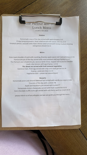 Read moreWe visited the Parlour today with 2 friends from London, who had read reviews and asked if they could have lunch with us. Having been several times before, I had booked within 5 minutes of them asking. I had explained that every element would be exceptional ingredients used in a completely honest way, no fancy names or flashy presentation. We could have chosen any or every item on the menu and received a great meal. In fact, we chose 3 different mains-all of which were delightful. The homemade pie my friend had no disappointing gap under the top crust before you found the meat. Chunky pieces of chuck steak filled the whole pie surrounded in beautiful stout gravy, I would have been envious except my beef hotpot more than matched couple with a herby dumpling. GREAT! The ladies had great roast pork and emptied their plates, no better recommendation possible. All at outstanding value. 2 very...