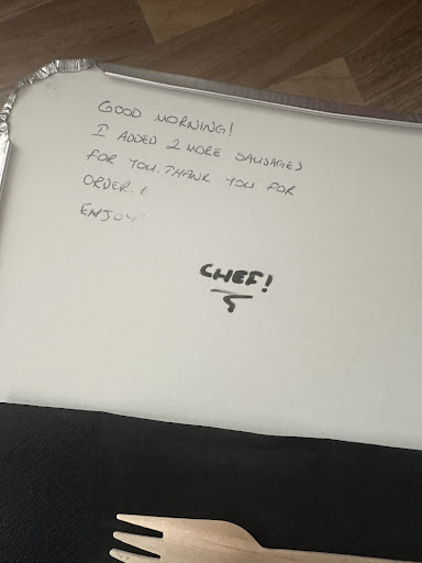 Read moreGotta be THEE BEST breakfast I’ve had in years! Ordered on UberEats for the first time this week and couldn’t resist ordering again today. I’m not a massive fan of eggs or beans, so I asked in the notes if it was possible to swap these for an extra sausage. To my surprise, I got two! And a very kind note from the Chef! Will definitely be a regular customer here and can’t wait to visit in person! Hats off to the chef, the food is amazing! I’ve not had bacon like it before and the sausages are to die for! Not to mention the perfectly cooked hash browns. :)