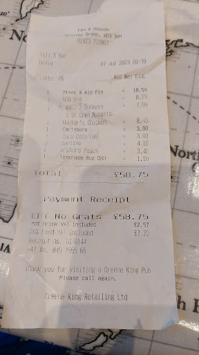 Ā Ā Ā Read moreCome here enough to know the wait times can be hit and miss with regards to food, but today was ridiculous enough to make us think twice in future. The food was lovely, but took an hour and 10 minutes to finally arrive, on what was a relatively quiet and half empty day, for a couple of pretty straight forward meals. Asked if it was going to be long on the hour mark (we weren't the only table asking about the wait on food) and was told sorry, and that it was because they have a slow chef today....by contrast my food a couple days earlier in a packed pub during the football came in half the time. We got apologies from the staff, and no real complaints there as they can't really do much else, but you'd think an offer of a drink or something for the wait would be standard Greene King process given the cost of doing so is like a drop in the ocean for a chain this big, to try and soften a poor experience. The feeling probably also wasn't helped either because we had to move tables to accomodate a larger group about half way in, which is understandable, but ended up with a small table in the corner or the pub, which wasn't the most comfortable sitting position, but was the only thing left available at the time without sitting on a small bar stool table by the front door. Definitely recommend the food but also definitely worth asking how long food is currently taking to come out whenever you visit,...