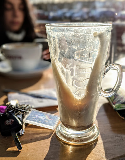 Absolutely filthy place. No tables were cleared so there was nowhere to sit in the cafe, the floor looked like it had never been swept and cups and plates piled high on the tables. Behind the bar was another story. As an ex Costa employee myself I would've been sacked on the spot if my bar was as messy as theirs was. Again, cups, blenders (not washing blender's between drinks either, serious allergy risk) and what looked like mouldy milk spills on the floor along with lids, napkins and coffee grounds.