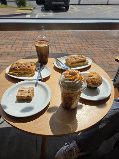 Came into store instead of the drive through as it seemed a lovely building. However, despite being first to order specifically requesting a caramel frappe without cream came a 20 minute wait. The que was building up with customers having drinks served before us. The baristas were not taking names or stickers on cups to identify the drinks and customers were handling all drinks as they didnāt know which was theirs. All customers dirty cups and platea were left stacking up in the collection area which was disgusting.