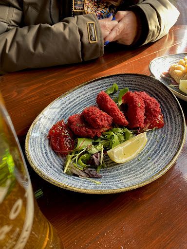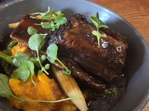 Read moreWent to the Thatched Inn in Abbotsham today & only gone & found another gem of a pub, this lovely 14th century pub has loads of character. Again we were greeted & welcomed in & asked what we would like to drink by the very friendly bar manager, I of course went for the local paleale called Shore Break from Country Life Brewery based in North Devon which went down very well. After perusing the menu we made our choices to which I went for the slow roasted Beef Short Rib with sweet potato mash, asparagus, baby corn & beef & rosemary just. This dish was amazing & cooked to a T, the meat just fell off the bone & when combined with the buttery mash & veg it was a pleasure for my taste buds to eat. Dawn chose the Panko crumbed Chicken Katsu Curry with white rice & pickled vegetables which was equally delicious as my dish. Dan went for the 8oz Pulled Brisket Burger, Macaroni & Koffman fries. This just like my beef rib was very juicy & cooked superbly. Overall all 3 dishes were excellent & presented very well & considering the chef is only 16 I think he will become one of the best local chefs in the south west if he keeps this up. Thank you to all the staff here for making this visit an enjoyable & memorable one & keep up the good...