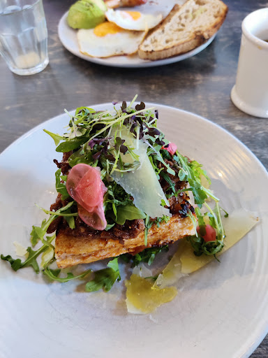 The breakfast options are fantastic. I got addicted to their breakfast tacos which are, objectively, a weird combination of Mexican Food x Irish Fry, but work SO well. Their buns are also very good, along with their toasties. Another highlight was their revamped Kouign Amann which is more of a crossover between a Kouign Amann and donut / croustillon than a proper Kouign Amann, but as exciting and good. I think we tried about everything they had to offer and all was from very good to excellent. The coffee, trusting my partner, was good and my hot choc always very nice too.