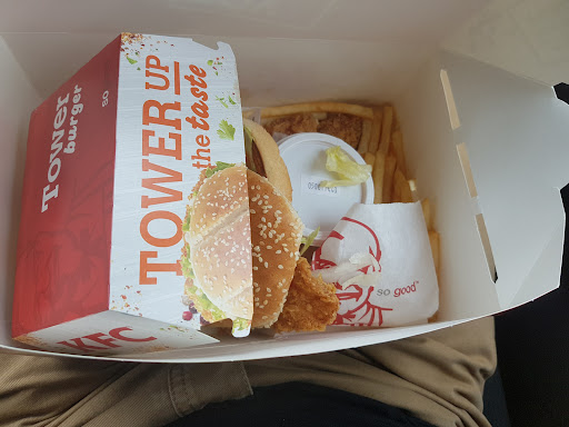 I went through the drive through which thankfully nobody else was in so didn't have the usual extensive wait. The manager spoke on the intercom to take our order which was; One chicken salad box with zinger chicken not fillet one kids meal with pop corn chicken a side of sweet corn a drink and ice cream one kids meal with chicken strips a drink and ice cream