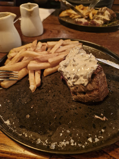 I had to double check the menu to be sure I hadnāt gone mad and ordered something bizarre before flagging the waiter down to question what in the holy hell was sat on my table, meanwhile the steak had been sampled for the meat and sauce to be cold at which point having been here for 90mins and an ever increasingly tired child I requested food to be returned and to leave.