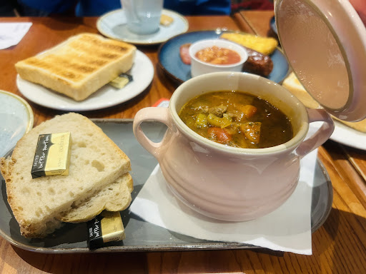 Read moreFreezing inside, went in to get warm with hot food and drink but sat there shivering. The place looks tired and has a bad paint job. All the furniture is crammed and mismatched. The food was served on cold plates so it was barely warm for long. It's a shame because the food is really nice in fact it's actually very good and the man serving was friendly but the whole place is freezing and...