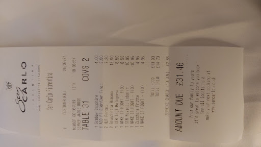 I spend a reasonable amount of money at San Carlo, in Alderley Edge, on a regular basis, and receive impeccable service and friendly banter with the staff there. It goes without saying, I'll be sticking with them in future.