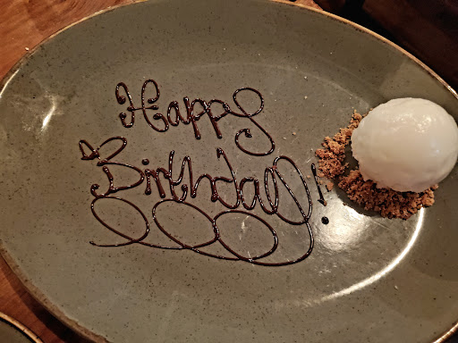 What elevated our evening even further was the thoughtful gesture of celebrating our anniversary with a complimentary dessert that spelled out "Happy Anniversary." This attention to detail was heartwarming and left an indelible mark on our special day.