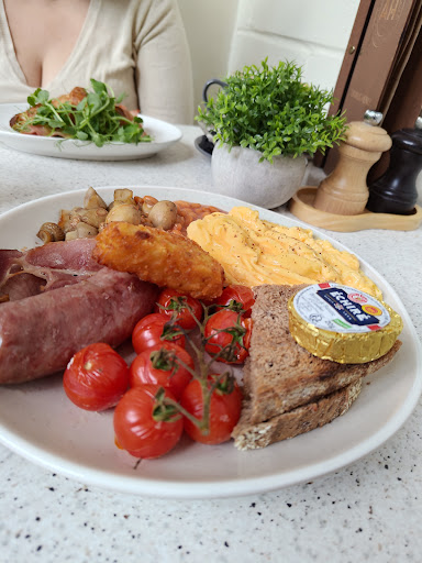 We went for Sunday breakfast. I ordered a smoothie and we both had vegetarian breakfast. After a short time we were told we couldn’t have the smoothie as they didn’t have any berries which was mildly disappointing. The breakfast arrived and looked appetising, consisting of smashed avocado, feta cheese, cherry tomatoes, scrambled eggs, baked beans and mushrooms with 1 small piece of barely toasted bread. My husband took a bite of what he thought was scrambled egg but it was actually a dollop of butter to spread on the toast, it was placed right next to the eggs so you would not have known it was butter because it was the exact same colour and shape, not a good start. We both took a mouthful of mushrooms and they were stone cold so it was sent back when we sent it back we asked for extra toast. The food came back with in a few minutes and was hot but no extra toast this arrived when we were taking our last mouthful of breakfast. So we asked for marmalade to go with it but they only had jam, no plates were give with the extra toast or butter knives so we scraped our butter and jam on with a steak knife, again the toast was really just warm bread not a trace of actual toasting. The waitress was lovely but whoever is working in the kitchen perhaps needs to have a few lessons in presentation of food and serving it hot. We have been to the auction house before with no problem but we will not be returning for a “cooked” breakfast, maybe just stick to a...