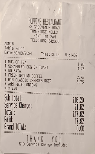Read moreFood was acceptable but they trick people with their menu prices. It states Extras.. scrambled eggs £0.30, but they charged £1.75. The waitress said it was £0.30 and made the error. They said it was no charge to scramble the eggs but when paying the guy said it costs us to add butter and added £0.6. They charged us £0.7 per jam when the waitress said it was included in the Toast serving. Whether it is a bad menu or untrained staff… this is poor. So I should have paid £24 but they charged me £27.6 and insisted I was wrong. Poor… clearly the ownership are not of the culture of England never mind...
