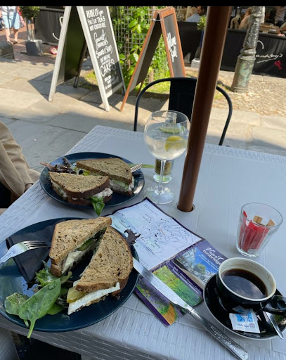 We were fortunate to find a table indoors which was quickly replaced with one in the sun by our lovely waiter. We enjoyed a "prawn star" and "cheese, shoots and leaves" sandwiches. The bread was gorgeously soft, pillow like seeded slices and contained generous portions of fillings. We enjoyed an Americano and G&T both at reasonable prices. We couldn't fit cake in for fear or ruining dinner (see Lago entry) but we will definitely be back on Day 2 for a slice or 2 of in house...