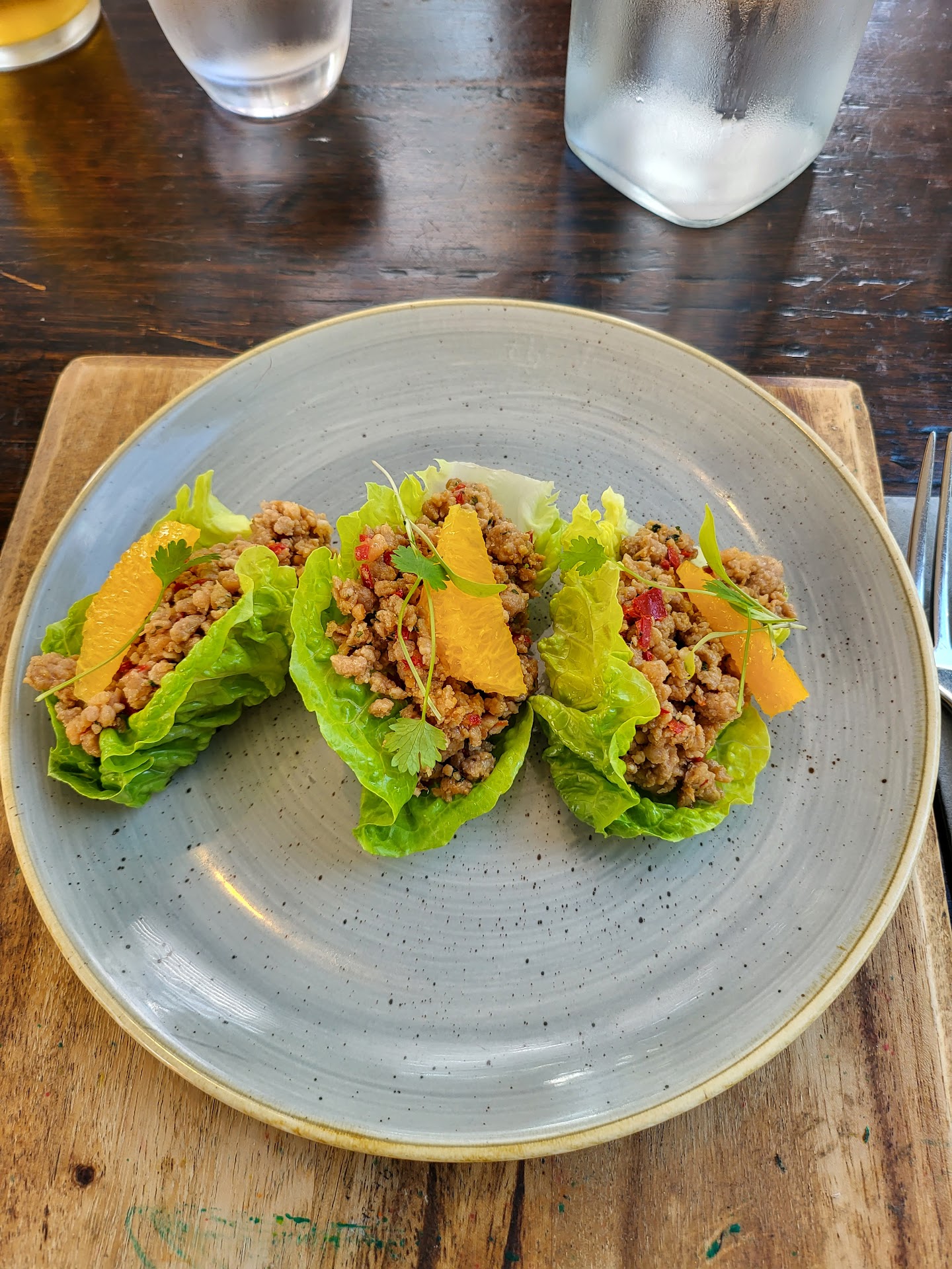 Our orders were taken and my husband was told they didn’t have what he’d ordered (a vegetarian burger). He instead chose the vegetarian version of a Caesar salad that was on the menu. This turned up with anchovies on it. Now I know that’s standard in a Caesar salad but my husband had explained he was vegetarian and the server had assured him it was a suitable option for him. He was then told to pick something else and told there was only 1 option by the waiter. He waited a further 15 minutes - we had been there an hour at this point. From the point of ordering our food to it arriving, my son’s empty plate had also sat on the table, stacked and clearly not being used. This remained on the table for the duration, despite 4 staff coming over at different times.