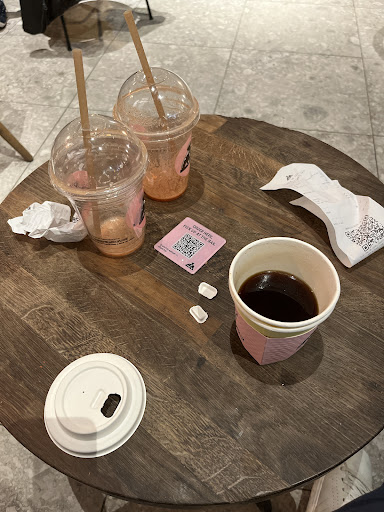 The same could be said with the man that served my partner a coffee. He was responsible for manning the till, while also preparing the coffee. It became quite clear that he has no training in making coffees, and he certainly was not a barista. Once my partner got her coffee, she realised there was no sweetener available and no coffee cup lids.