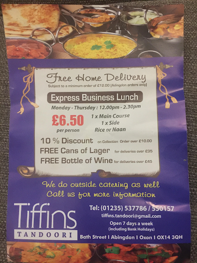 Read moreTiffins Abingdon has good reputation locally and i have been ordering with them for a while. They had good service but looks ike they aren't able to cope with recent popularity and demand. Hope they get back to their usual best. I ordered takeaway, Takeaway delivery took over 90 mins to arrive , Was told 45 mins, it never arrived on time, had to call again to check. Finally it arrived after 90 mins, oil/curry spilled in the takeaway bag. I didn't want to post but this has happened...