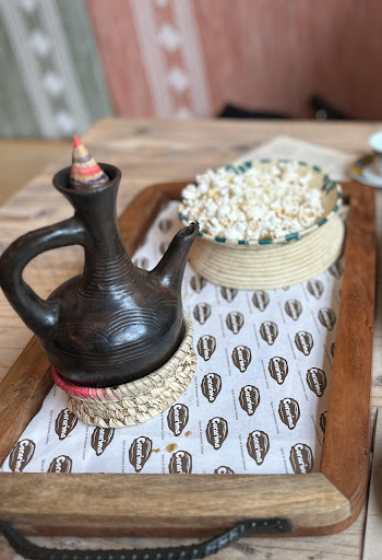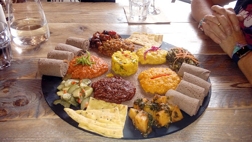 I have heard a lot about Corarima and thought it was about time to try it for myself. Warm welcome from the owners and made to feel very comfortable from the start. The restaurant is cosy and spotlessly clean with a minimal feel despite plenty of traditional Ethiopian and Eritrean decorations around the room. It really is very nice. Having never tried food from this part of the world, we decided to put our trust in the chef and ordered a sharing dish for three with a starter of hummus (made in house), flatbread made from chickpea flour and potato wedges spiced with berbere. All incredibly delicious and the softness of the flatbread was a welcome change from pitta. The main arrived with some theatre, presented on a slate with a selection of main dishes spooned on top of a large piece of injera, a flatbread made from teff flour - a grain native to Ethiopia and Eritrea. Encouraged to eat using the injera to scoop up the vegetable based dishes in front of us. Everything was beautifully flavoured with numerous spices (in some dishes as many 18). The meal was completed with a pot of coffee, poured for us from a beautiful jebena into tiny decorated cups. The flavour of the coffee was intense with the beans roasted and ground in house before being flavoured with ginger, cardamom, anise and presumably various other spices. The saltiness of the popcorn, traditionally served with coffee in Ethiopia, really added something to the coffee. Wonderful restaurant, lovely warm and hospitable hosts and exceptionally flavoursome food. It was a pleasure to be served a meal which came with a little insight into the traditions and culture of what I am sure is a fascinating country. Looking forward to returning to try...