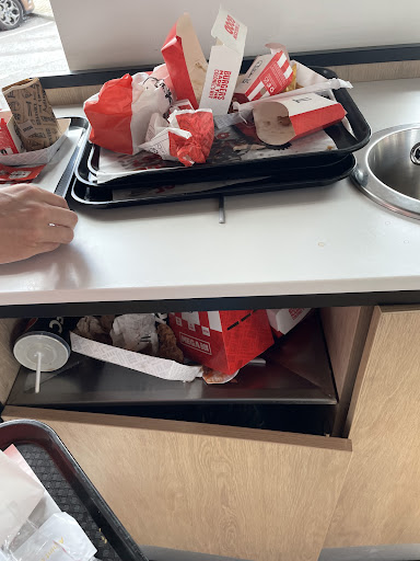 Read moreAbsolute rubbish. Ordered food and there was no mention of a delay. After 10 minutes the counter area was getting overcrowded with annoyed and frankly fed up customers. From our table we heard a staff member tell a customer there was a 10 minute wait for chicken. 50 minutes later we will still waiting. Several people had complain and were met with an unpleasant attitude from staff. My partner had approached the counter twice and given different times,still no chicken. When I approached the counter I was told they now have chicken but have now run out of other items. This was after almost an hiurs wait of being lied to just to stop customers for wanting their money back. Staff were ignorant and rude at times to customers. When I ask what items they had run out of the server replied 'mini fillets and stuff' but wouldn't give me any more details. I could have changed my order but we were getting no where. They made sure the just eat drivers got there food before sorting the eat in customers. I was not the only unhappy customer. We were in a line to get a refund but even then we were being told ' just 3/4 minutes'. The worst service ever in a KFC. Refunds should have been given after being made to wait so long and WITHOUT QUESTION. People were made to feel they were in the wrong to ask...