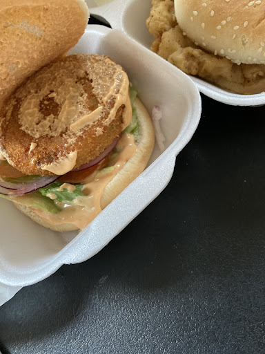 Nice burgers: we like the chicken filet burgers; the 'Night Rider' burger is worth a dabble if you like charcoal baked buns; the sauces are usually a third full / so good to check beforehand if you want more; the fries are a little too crunchy for us; we like the rice dish's / ‘Chicken Chawal Box’👌