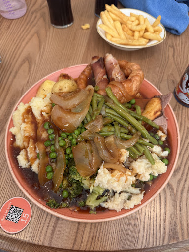 Mixed reviews from us today. We've been coming to Silkwood fairly regularly since it opened but our last few visits haven't been as good overall as they used to be. We both had a carvery at roughly 4.45pm. No complaints about the meat at all, between us we had turkey, ham and beef and they were all great. However, the veg wasn't great at all. Apart from the cauliflower cheese, that had just come out and was red hot and fresh. The rest of the veg looked dry as though it had been under the lights for ages. Roast potatoes were soft and dry and other veg rock hard. Yorkshire puddings were bought in, soft / soggy.