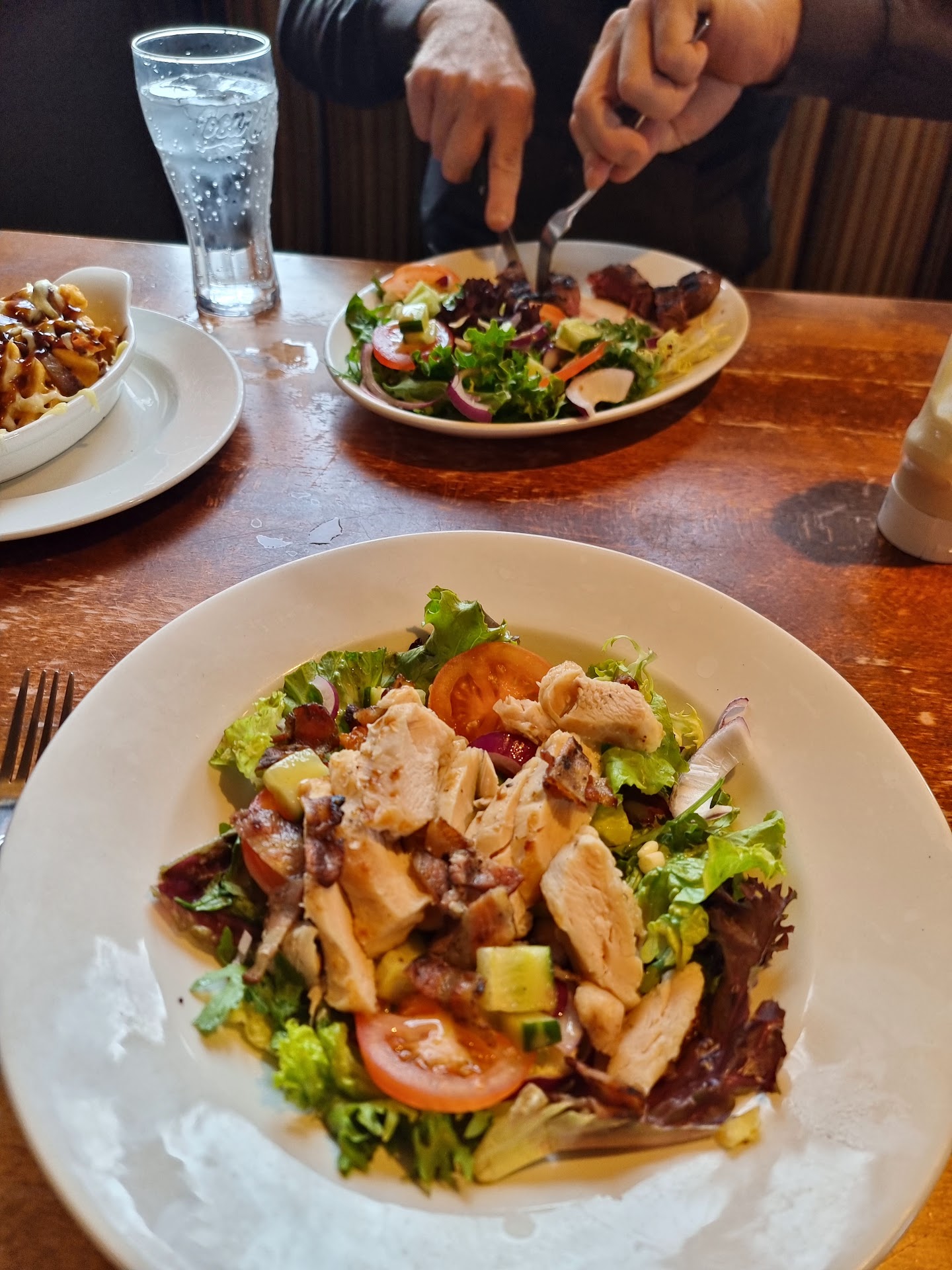 We waited about 45mins for food even though it wasn't busy at all... When the food came the chick & mix (picked instead of mix grill) and kids meal were both fine and hot ready to eat, the sirloin had cold chips and no tomato and the onions on the skillet were poor (my dad will eat anything but said it wasn't the best but didn't want to send back) the x 2 Philly's that came (x 1 instead of the skewer) came and were horrendous. Both had Cold chips, cold steak and had a few red onions and a squirt of cheese sauce on top, looked nothing like described on the menu. Asked what the problem was to be told there's no peppers or spring onion so can heat it up or do a different meal. Picked two different meals (lasagne and chicken burger) which we were told would be 7mins(following the long 45min wait earlier?!) So clearly just thrown in a microwave. Lasagne was tasteless and chicken burger was undercooked but the chips were hot...