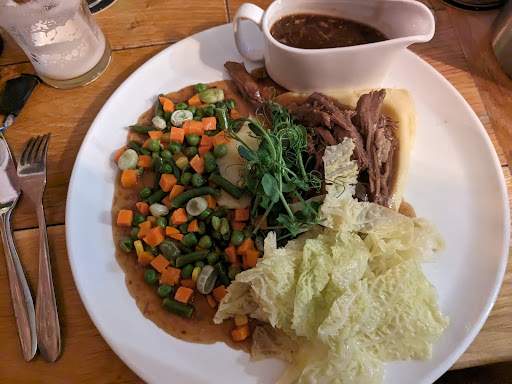 ย ย ย Read moreVisited our local pub ,been many times before and thoroughly enjoyed! Subdsy lunch and brekkie brilliant !! Heard meals had gone down hill ! But gave it a go and took friends , booked for 6.00 ,Saturday . Yes Saturday is busy, but couldn't talk for the way too loud music piped music ! , people were having to shout above the music to talk ! Meal arrived, the seasonal vegetables were tasteless frozen mixed veg, the beef brisket was a miniscule amount and absolutely tasteless, no seasoning at all! Had seen this arrive nxt to us but didn't notice the veg, the brisket sat on a mountain of mash , asked for mine reducing and extra veg to replace which they did and was a nicely cooked portion of fresh cabbage, The mixed grill , was accompanied by a very watery garlic and mushroom sauce, but tasty, how do you put this on a board ?? Asked for a plate, and steak, quite tough! Asked the choices for gluten free pudding for an adult !!! Ice cream !! That's just so lazy , so none of us had a dessert out of protest! . So many gluten free choices to buy in ! Can't blame cost of living crisis, as frozen veg is more expensive . Sadly very disappointing. The singer was flat , and wrecked every song he played and again way too loud while we were trying to have a meal. !! Left very early . Very expensive for what we had. Not value for money except the burger & chips which is why I gave a 2...