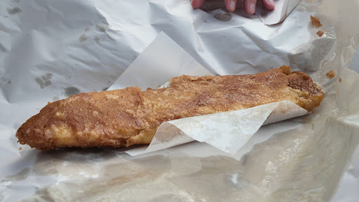 The Special Fish (haddock) was quite large but a bit of a let-down, due to the beef dripping not having had a chance to drain before serving, which resulted in a lot of excess grease soaking through the paper and leaving the batter damp in places. The same applied to the chips, which, regardless, were plump, tasty, and plentiful. However, the batter on the fish was flavourful. What stood out the most was the quality of the fish itself — fresh, white, plump, and delicious. This wasn’t just the case with the Special Fish, but also with the massive fish, chips, and mushy pea bread cake, with the fish cooked to perfection, thick and flaky.