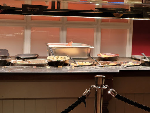 We was not greeted, as we went to the manager’s selected table, we didn’t like it, because it was dirty. We called over 10 times and they didn’t mention a thing. But be rude on call. Chewing gum and stickers and vegetables around the table. We told them to clean it, they said do it yourself. Then we went to go get the buffet, and the food was cold. We asked to reheat the food, they refused, there was blood in the beef, the beef had a bad smell in it. The mashed potatoes were so hard, you couldn’t take a spoonful of it. The beef had too much fats in it, that you couldn’t cut it with a knife and fork, it was unbreakable. The vegetarian gravy was very salty. And when we went to go the second time, we was told that you couldn’t eat meat, the second time. I had to waste my time, instead of eating my food, we were complaining to the manager and the people who served me, but my family almost vomited. And they didn’t tell us you couldn’t eat meat the second time, and we suggested them to put signs around saying you couldn’t, since they said they weren't bothered to go tell everyone. But they didn’t care, the room overall was cold, and they didn’t agree on how the customer is always right, the roast was burnt. There was awful service, go anywhere else except here. It’s a shame, how I’ve come 35 minutes away, and this is how me and my family, is treated like. Besides that, I think there needs to be a new management, because the manager was very rude and didn’t want to listen, to our concerns and the other people’s concerns. There has to be improvements about kitchen staff, and the food. And they have to listen to the customer. They don’t care, they give old, stale food. That you can’t break using a knife and fork....