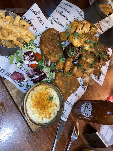 After getting the bill, we were charged for our 'sides' although they should have been included in the mains or at least informed us it was extra. My gf asked or the spices sauce they offered with her burger and it was just sweet and not even spicy. The platter was sweet, as well as my wrap. All foods were too sweet just enhanced bbq sauce flavour. £90 for that food. Joke.Overprices as hell.