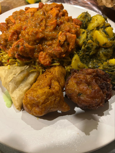 The food is cooked perfectly, fresh vegetables, expertly spiced, tender tandoori chicken and fluffy garlic rice, all served piping hot!