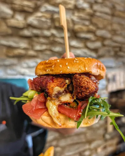 Panko Chicken Fillets, Monterey Jack, Tangy Korean Barbeque Sauce, Chilli, Spring Onions & Pink Onions In A Seeded Brioche Bun With Triple Cooked Chips & House Slaw.