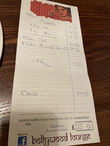 Read moreWe stopped for food at the end of our journey after a walk from Porthcawl, we didn’t have a booking but they squeezed us in despite being busy, a nice two person booth at the back of the restaurant. We had poppadoms while we decided what to order, which were very nice and had loads of sauces and accompaniments with them. We had chicken tikka and lamb tikka starters which were both nice but the lamb was definitely better. For main we had chicken jalfrezi and chicken balti with garlic naan and pilau rice. Both were very nice, the jalfrezi was on the hotter side for a jalfrezi. We also had a bottle of the Marques de Caceres Rioja white which was very nice. Overall great food but extremely good value too, it was around £55 without a tip. The staff were also very chatty and welcoming. We had a really enjoyable meal, would thoroughly recommend, thanks for your...