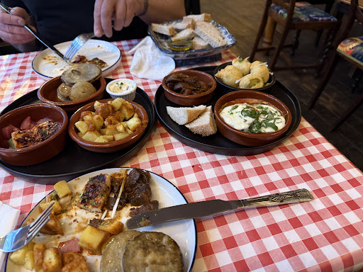 On arrival the place was empty 6pm so felt a bit awkward, shown to table by the host. Considering we were first there, there was no rush to get menus to us. When the host did bring them, he was very pleasant asking why we were there etc, but then went on to explain the menu in detail which tbh was straight forward. He mentioned not to order too many tapas at the time save them going cold which was a good comment. The wine was very nice when it arrived. We were offered bread and oil, which is normally given to start with while waiting for food to be cooked, but it was not served until the other dishes were ready, which defeated the option in my opinion, we had hummus which also came with a lot of bread and there was also bread on one of the other dishes too, so if we had known that we wouldn’t have ordered the bread and oil One dish Paprika mushrooms was over spiced for both of us, which we mentioned when he came to collect the plates, but he very offhandedly said well they are paprika mushrooms. No offer to replace or remove them from the bill The other tapas were ok, but we have had far better in other places We had deserts which were very nice, but my wife thought they would have been better...