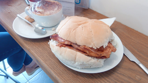 It was great to finally find a cafe open in January on a cold, windy but sunny day! Small, just a few tables n chairs. Steps up to the counter, clean toilet available. We had coffee, soya hot chocolate and both had a homemade almond n coconut bar, coated in chocolate on one side, with glacé cherries in. Omg! They were lush! They were quite big, so I ate half and had the rest later on. Lovely, friendly staff. Opposite a small Tesco, so we parked in Tesco car park and walked across the road. Would highly recommend the...